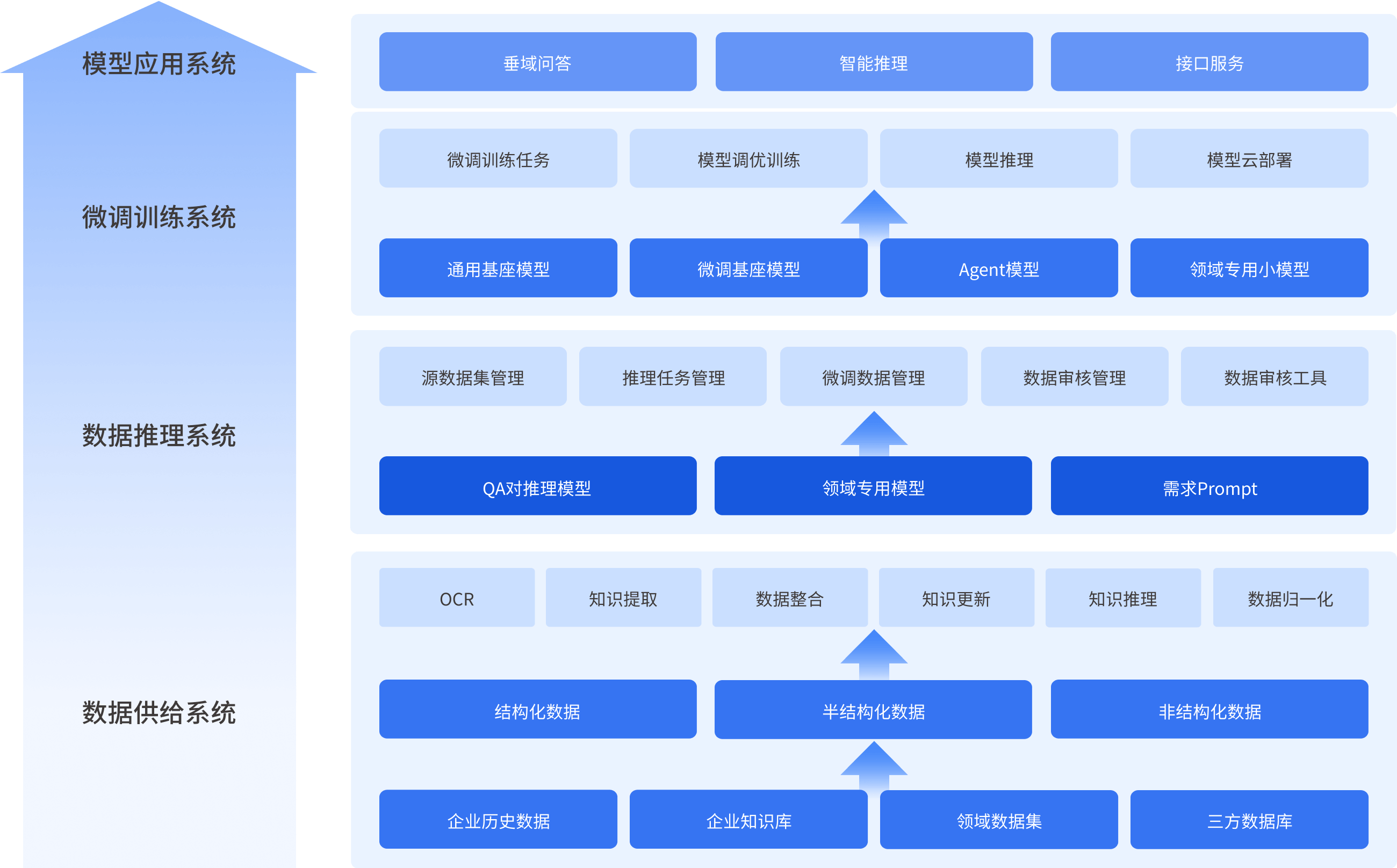 2:两大平台提供强力支撑,深度融合数据治理、AI Agent智能体应用编排、Prompt指令工程等前沿技术,使模型构建与应用更加高效精准,结合先进的解码策略、RLHF(人类反馈强化学习)、模型微调及COT(链式思维)技术,确保模型推理的精准高效,为行业应用奠定坚实的技术基础。